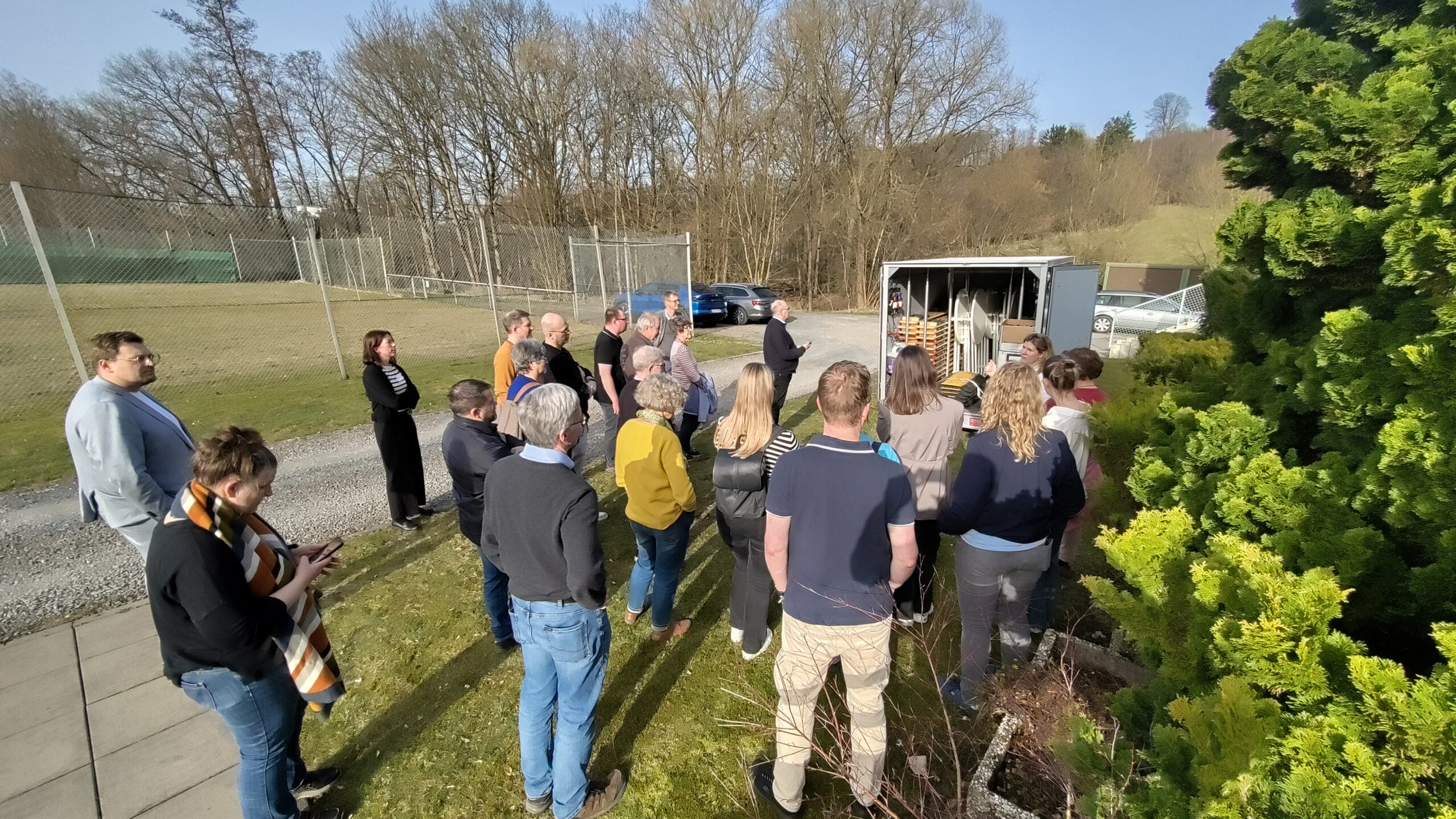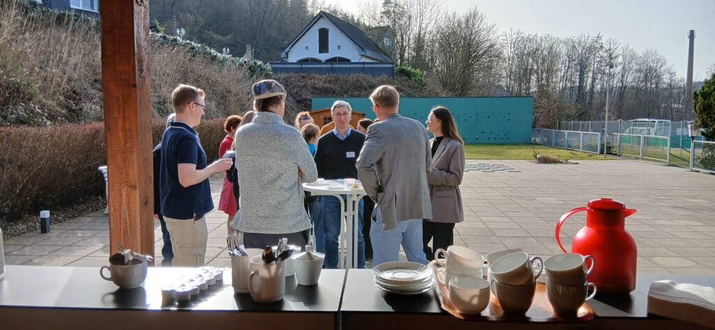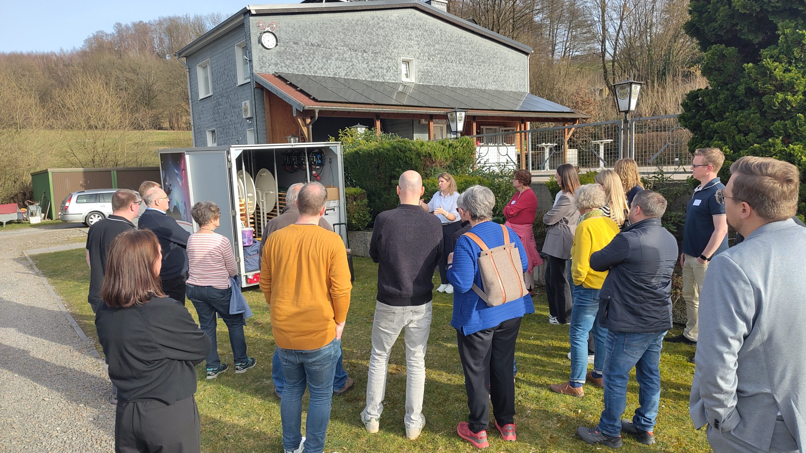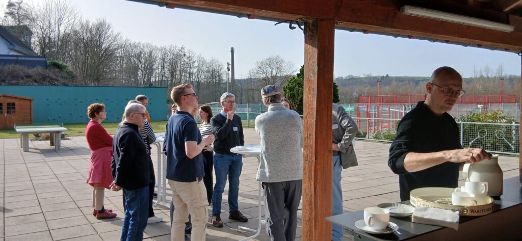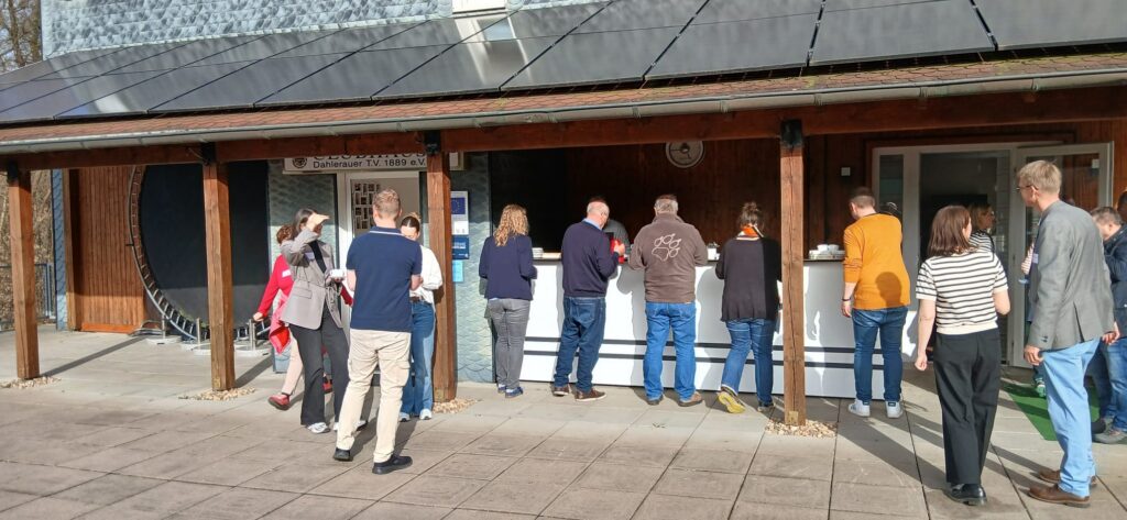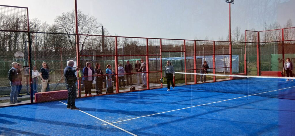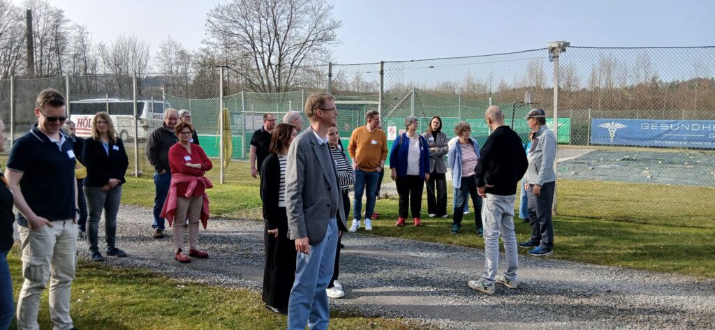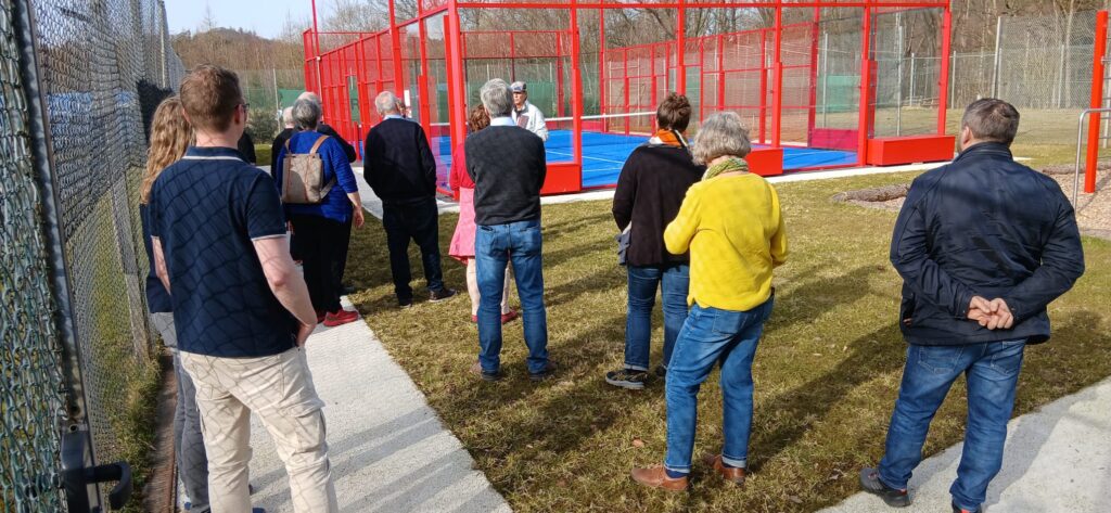 Die LEADER Busrundfahrt endete bei uns auf dem Gelände in Obergrundwald. Nach der Besichtigung und einigen Probeschlägen auf dem neuen Padelplatz gab es Kaffee und Kuchen bei bestem Wetter. Neben vier Vertretern und Vertreterinnen der Bezirksregierung Köln kam auch der Bürgermeister Dejan Vujinovic.